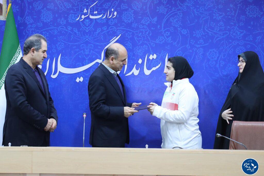 در پایان این جلسه از ستایش یوسفی دانش آموز لاهیجانی سال سوم متوسطه از هنرستان تربیت بدنی شهر رشت و عضو تیم ملی فوتسال دانش آموزی کشور تجلیل به عمل آمد.